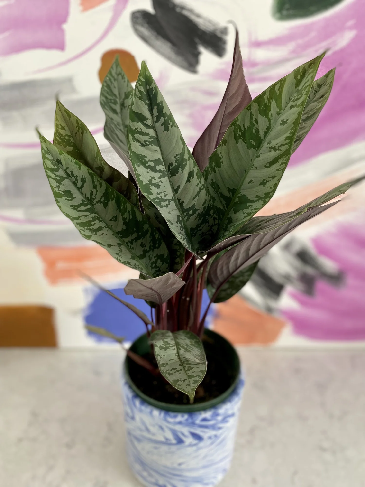 Rhizomatous herb to 30cm tall. This rare aroid has beautifully patterned leaves with deep purple undersides. Apoballis Acuminatissima is formerly known as HomalomenaPurple Sword.