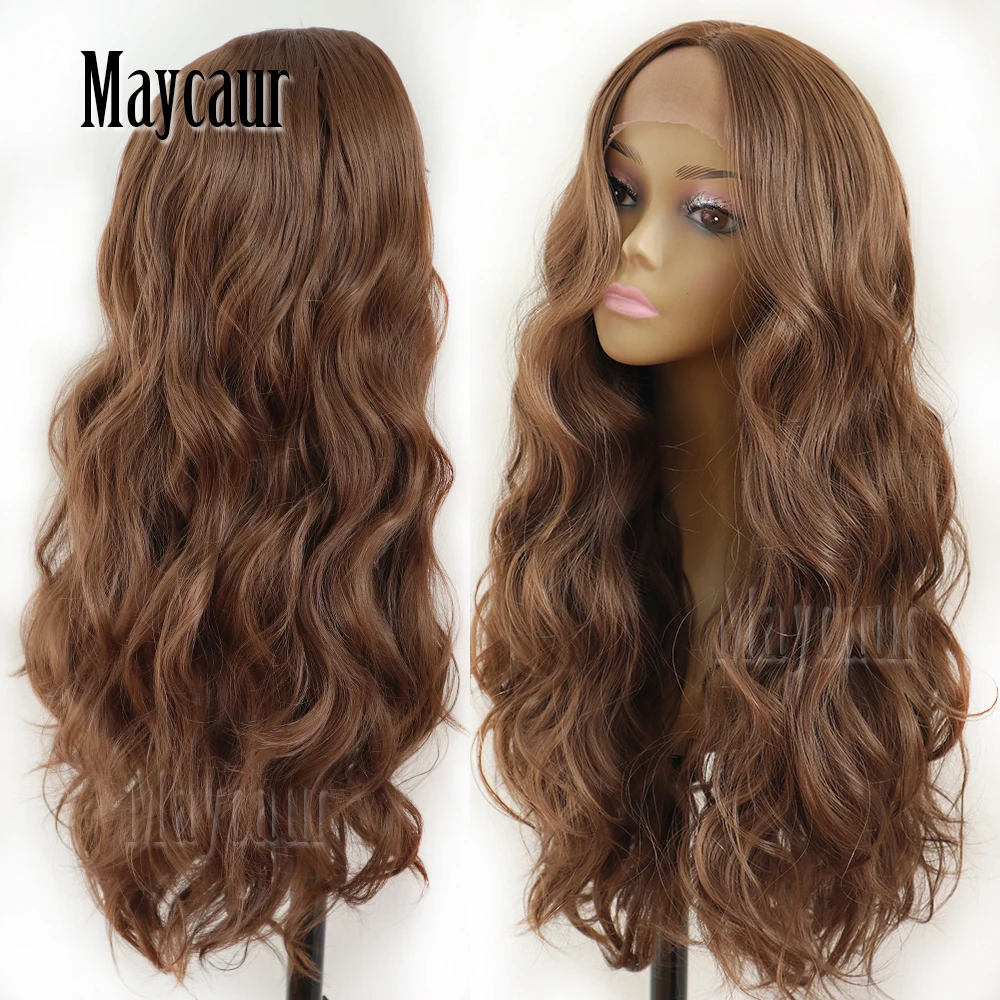 Maycaur Hair Middle Brown Color Long Wavy Hair Lace Wigs Glueless Heat Resistant Synthetic Lace Front Wigs For Black Women Synthetic Lace Wigs For Black Aliexpress